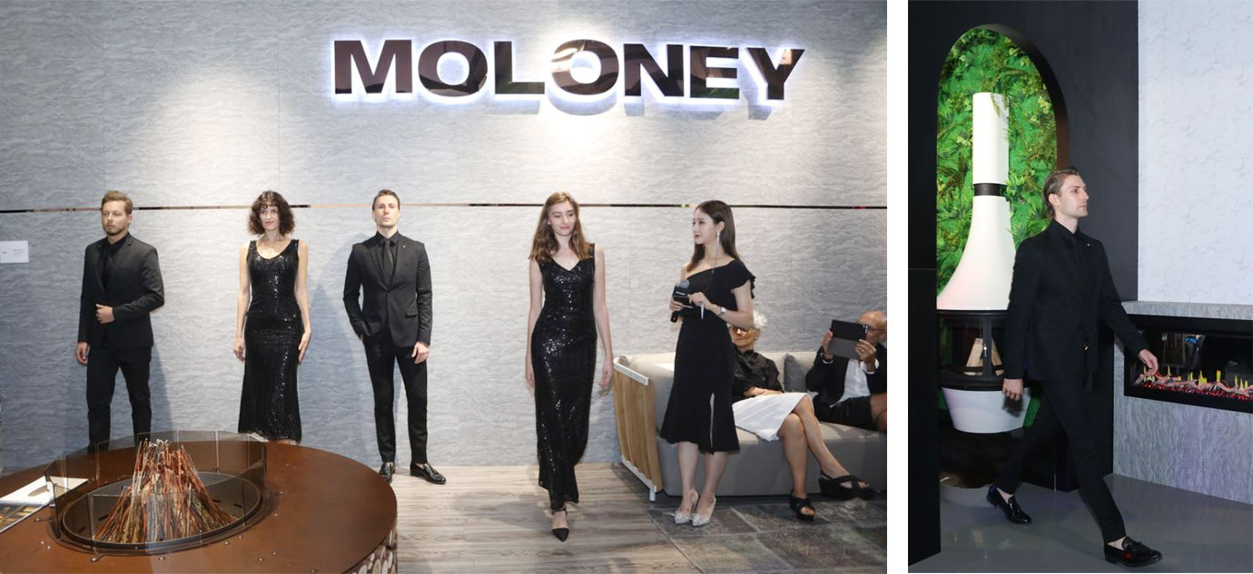 為了由內(nèi)而外地展示時尚精神,此次莫洛尼展位設計引入了“時裝秀”的概念,為每一個閃耀奪目的壁爐產(chǎn)品定制了專屬櫥窗展示空間,令其如模特般在秀場上綻放最自信而優(yōu)雅的姿彩,而“尋找最IN 的莫洛尼”活動更是通過精心設置的環(huán)節(jié)引爆全場。
