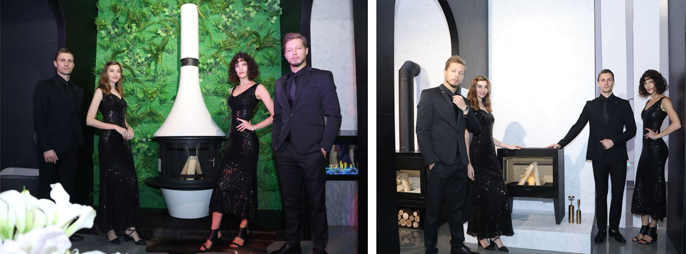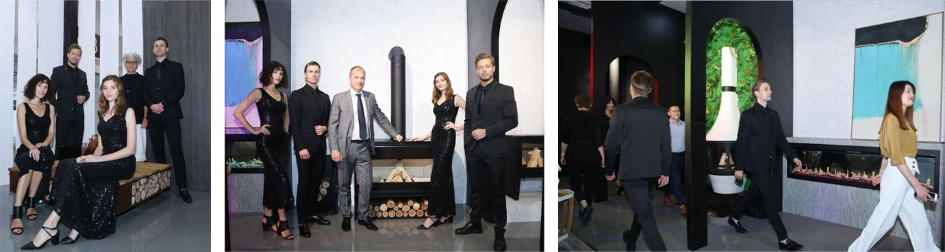 緊隨著?四位嘉賓的介紹,外籍模特從活動場地中間——亦是此次AK47的展品之一Zero圓形壁爐兩側相向而行,與各款產(chǎn)品互動演繹,以曼妙的身姿詮釋壁爐的藝術氣質,帶領來賓一一了解每款產(chǎn)品的精妙獨到之處。