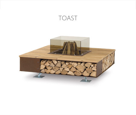 分別是意大利AK47的Toast戶外方形燃木壁爐和Zero戶外圓形燃木壁爐,以及莫洛尼自主研發的全新M+系列電壁爐。